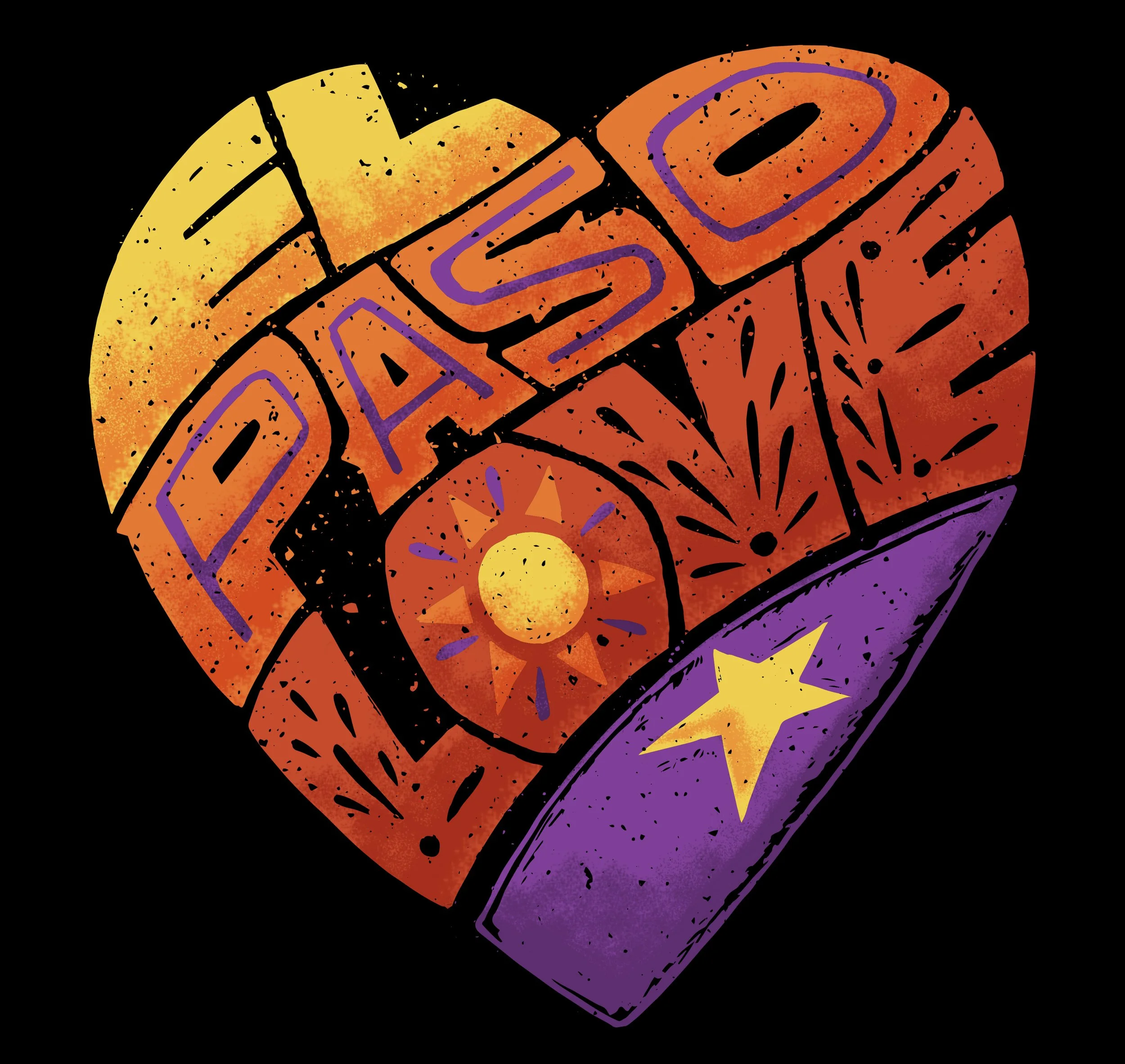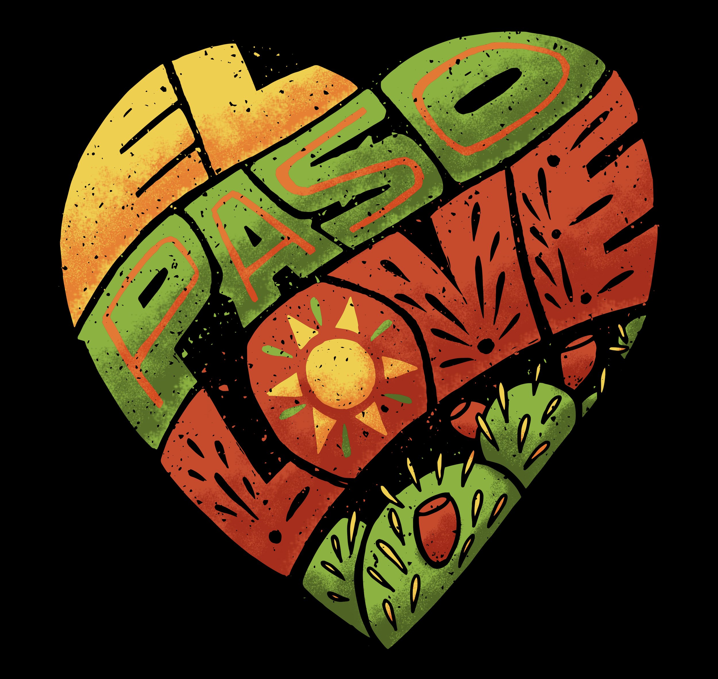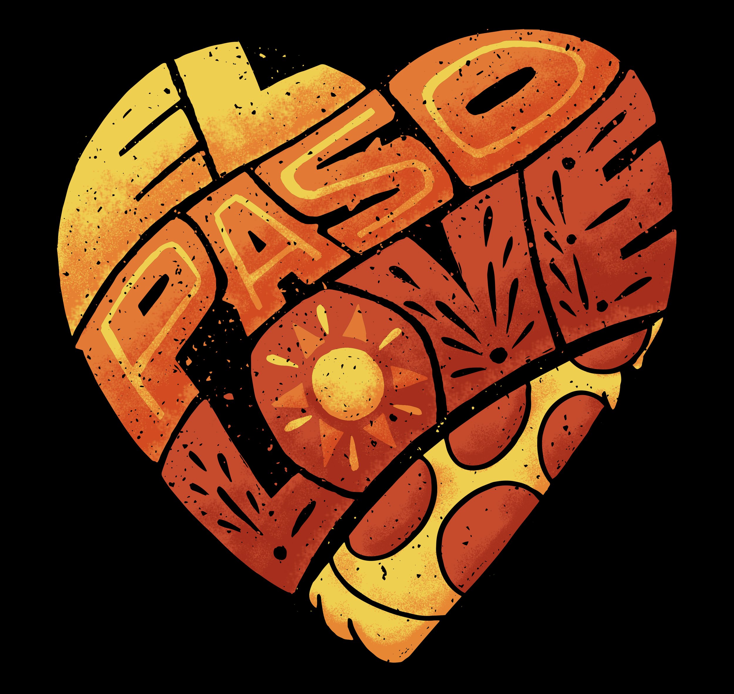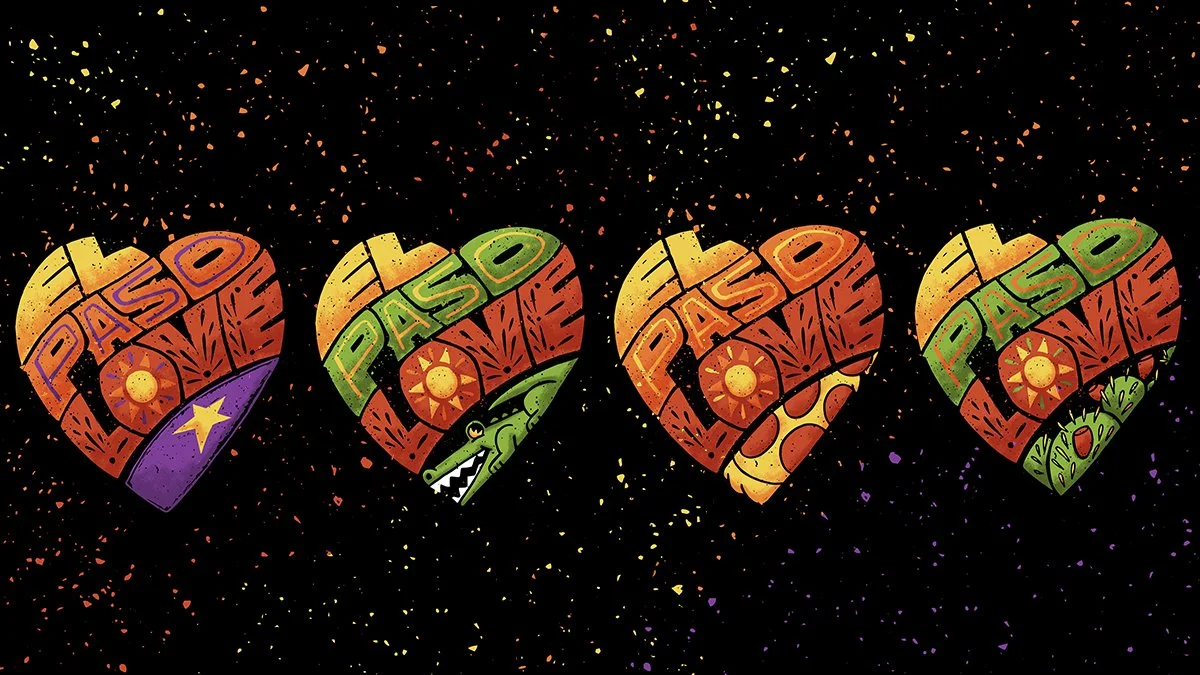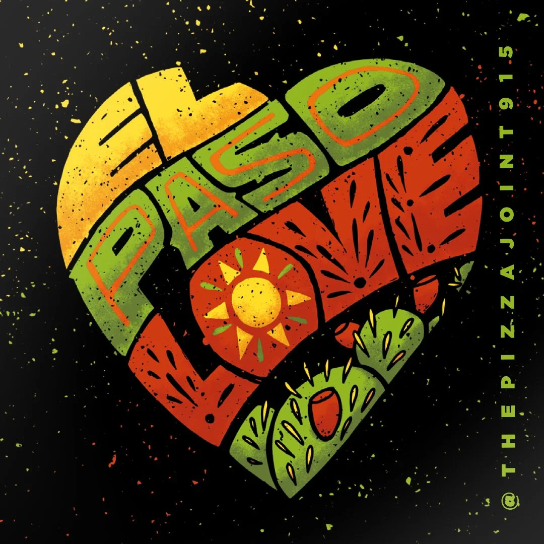 The campaign visuals incorporate iconic elements beloved by El Pasoans: The Lagartos, The Star in the Franklin Mountains, The Native Opuntia Cactus, and The Pizza Joint’s Pep Pizza. These elements were brought together in illustrations framed within an implied heart shape, paired with custom “El Paso Love” lettering to reinforce a message of compassion and solidarity.